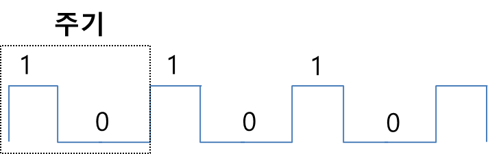 디지털 신호는 데이터를 이산(2개)의 값으로 표현하기 위해 주파수가 있는 교류(Alternate Current) 파형을 사용하며