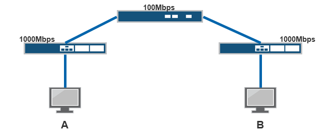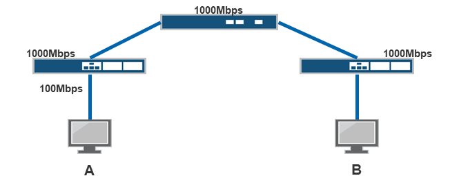 -> 중간 장비에서 100Mbps 까지 밖에 지원을 안하므로 100Mbps.